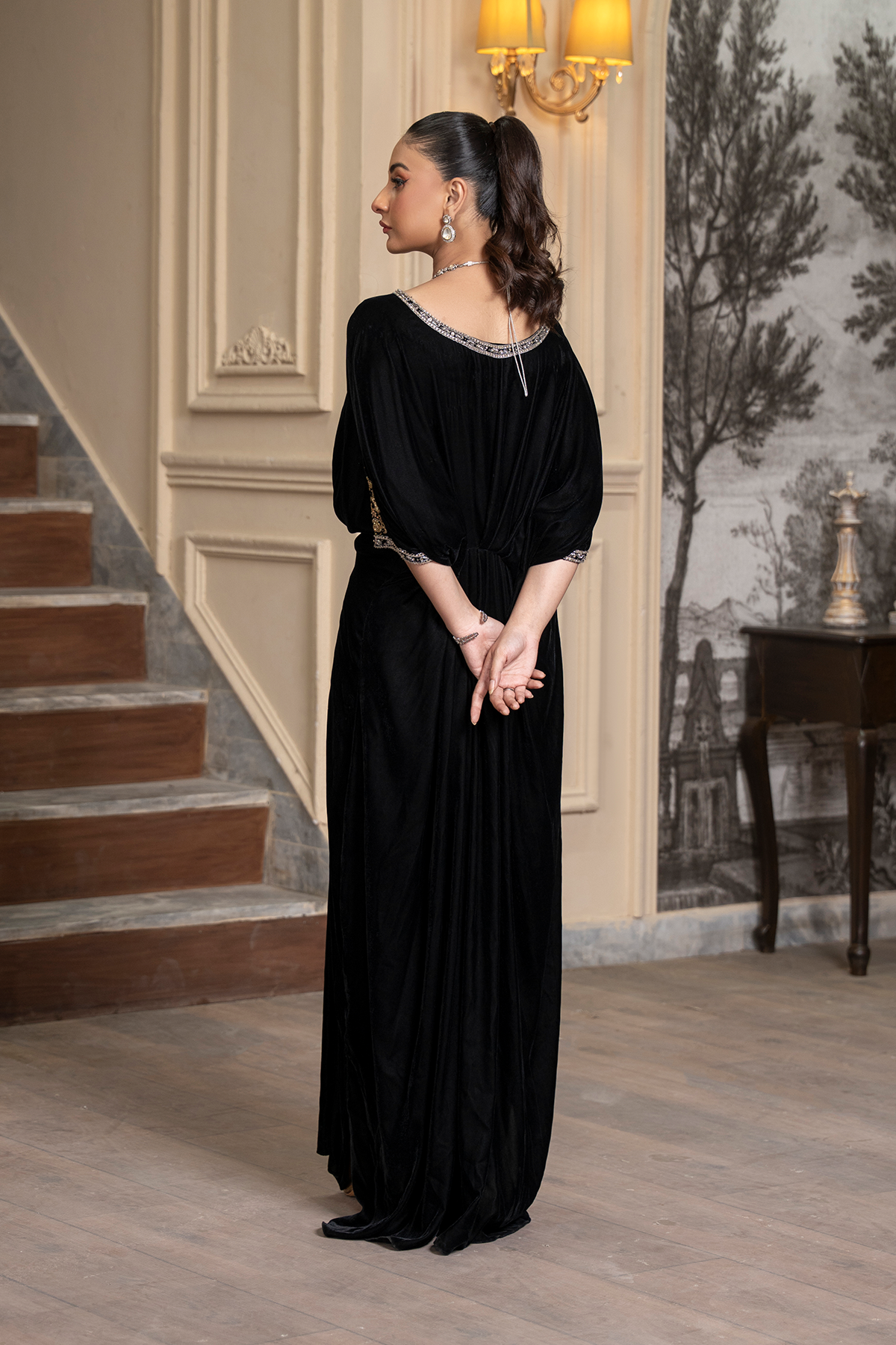 The luxurious texture of velvet paired with delicate threadwork makes Midnight Dusk the perfect choice for winter soirées, evening events, or festive gatherings — embodying both comfort and regal sophistication.